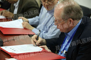 在本次中·美·加白癜风医学医生学术访问交流中,来访医生团全面考察了解了昆明白癜风的整体配置、医生资质、治疗设备、临床技术、诊疗服务等方面后,与我院在学术交流、资源共享方面达成了共识,围绕白癜风学科建设,中西医诊疗理论、诊疗技术签订了长期合作协议。我院特聘美国华盛顿大学医学院皮肤科主任伯纳德·葛菲教授(Dr. Bernard S. Goffe, MD, FAAD);加拿大医学博士、国际著名皮肤病医生巴里·皮特博士 (Dr. Barry Pitter);美国、加拿大医学博士、美国医疗改革医师理事会委员宋建明博士 (Dr. Jianming Song, MD, CCFP, ABFM) 为“远程医学顾问”,与美国、加拿大皮肤医学实现技术对接、国际同步。
